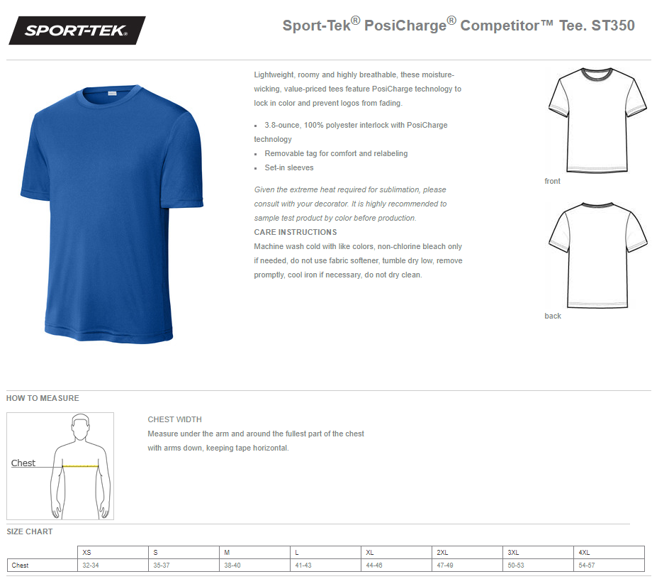 - 3.8-ounce, 100% polyester interlock with PosiCharge technology